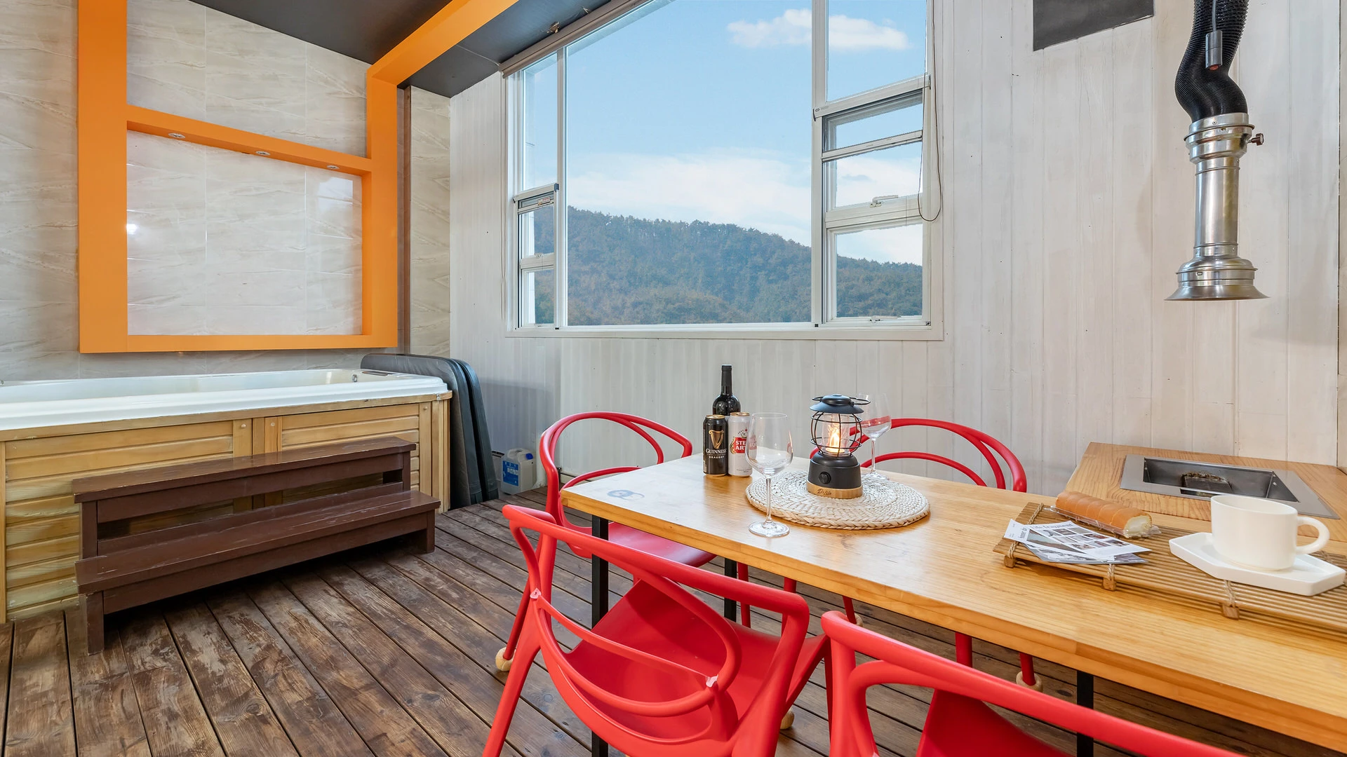 - 집기품목 : 개별바비큐, TV, 에어컨, 냉장고, 커피포트, 전기밥솥, 전자레인지, 드라이기, 린스, 무선인터넷, 욕실용품, 바디워시, 샴푸, 타월, 와이파이, 일산화탄소 감지기, 소화기, 화재 감지기, 침대방, 금연, 산전망